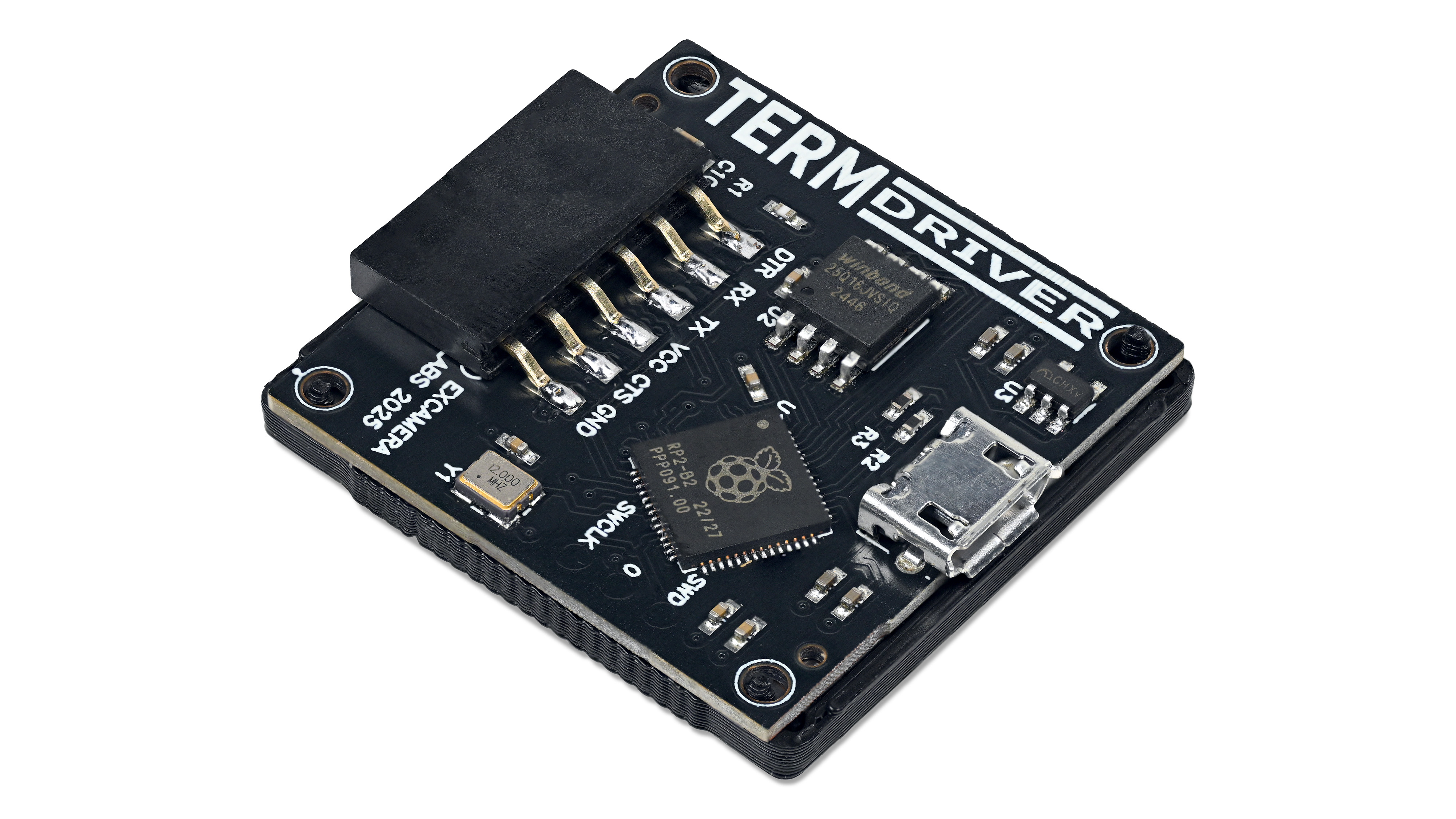 You can use TermDriver 2 just like any other fully featured USB serial adapter. It supports high speeds and includes a 32 KB input buffer, capable of supplying up to 350 mA at 3.3 V. TermDriver 2 can also operate independently of USB, allowing it to be added as a console to embedded systems, such as a Raspberry Pi.